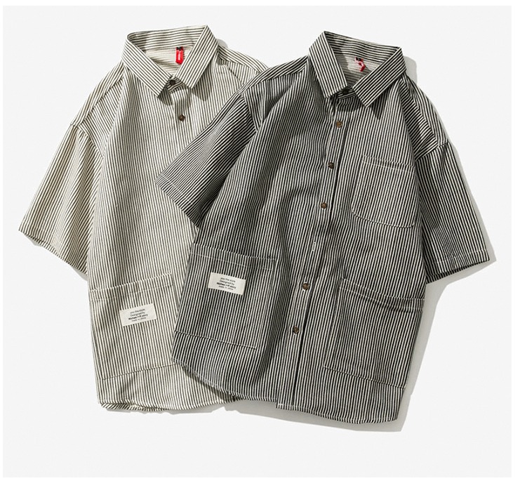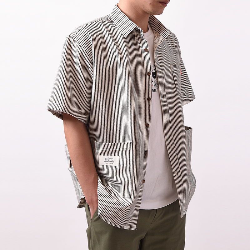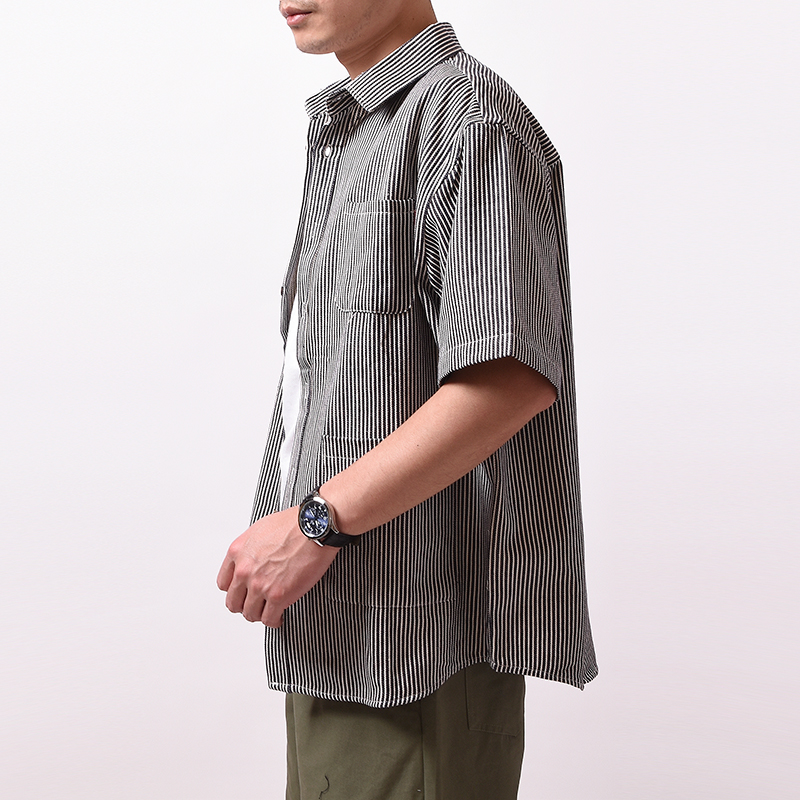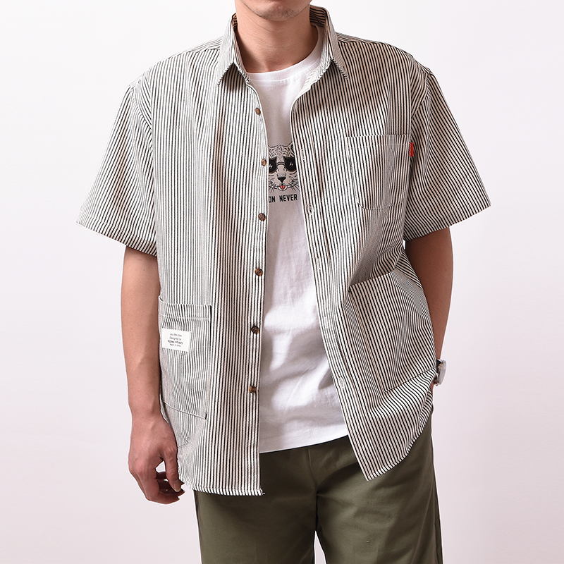 DESIGN BY NIZHES IRSTORY MULTI POCKET STRIPED SHORT SLEEVE SHIRT