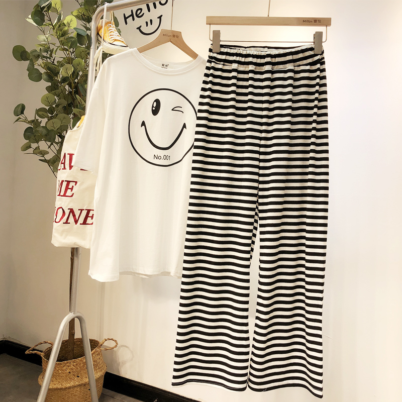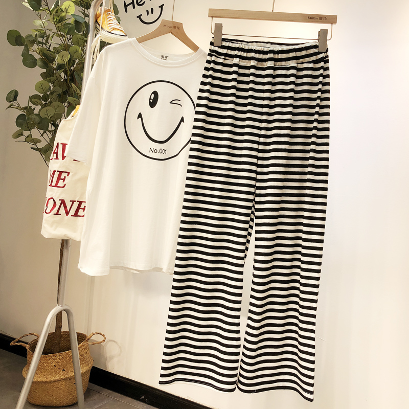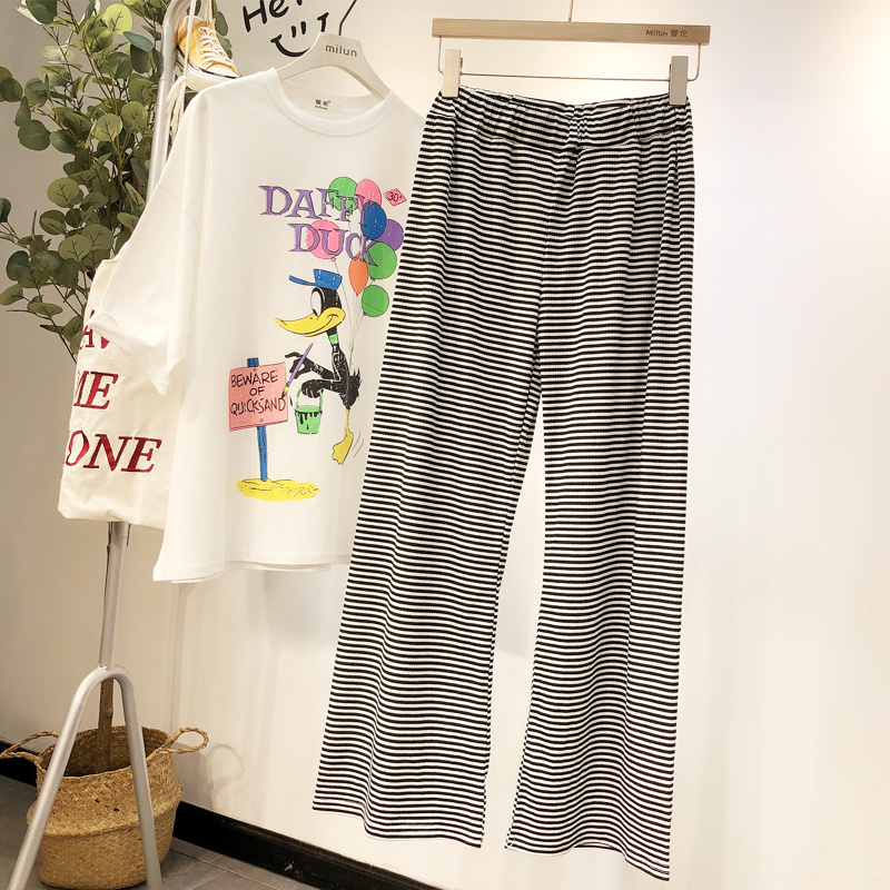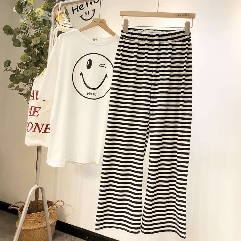 BOOPDO DESIGN PRINT T SHIRT WITH STRIPE PANTS