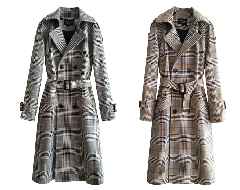 JOE CHAO URBAN BRITISH STYLE OVER THE KNEE PLAID TRENCH COATS