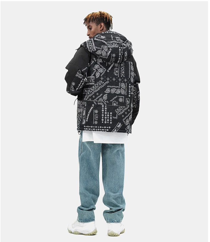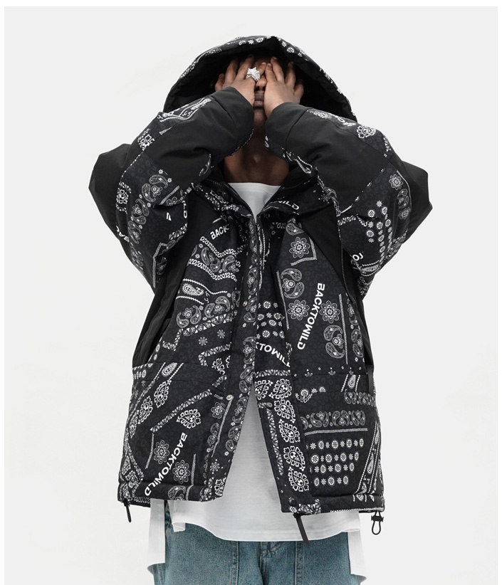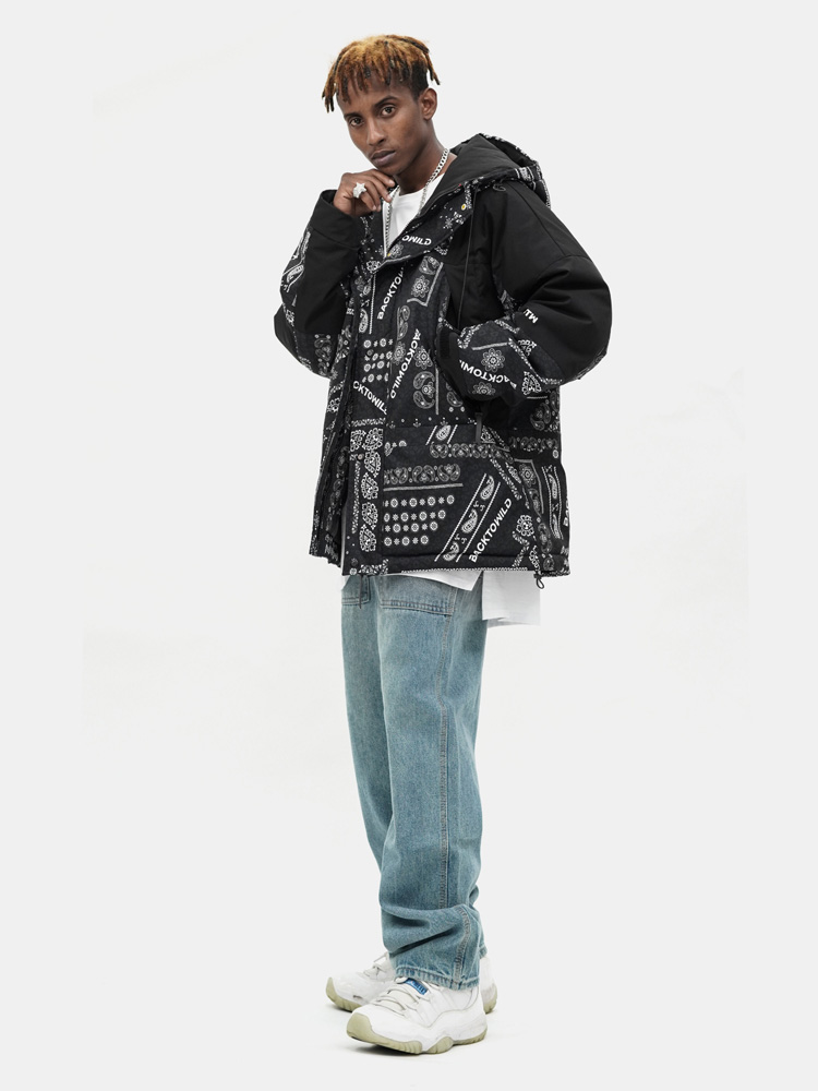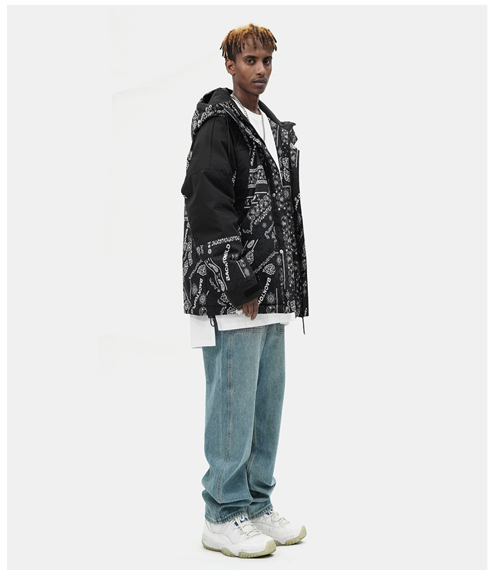 EDVINO VEGA BTW TRENDIX CASHEW FLOWER HOODED JACKET IN BLACK