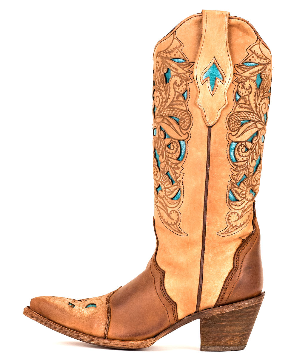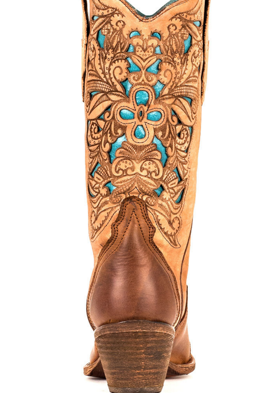 USA CORRAL TURQUOISE HUED HAND CRAFTED LEATHER CONTEMPORARY BOOTS