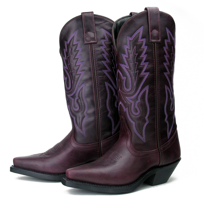 USA XTRAIL PURPLE COLOR LINE EMBROIDERED DARK RED COW BOY BOOTS