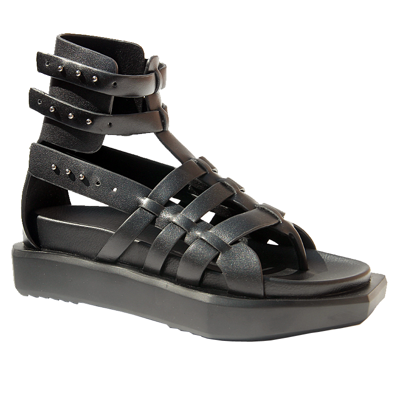 DOMINICO ROMAN CLIPS OPEN TOE PLATFORM SOLE LEATHER SANDALS IN BLACK