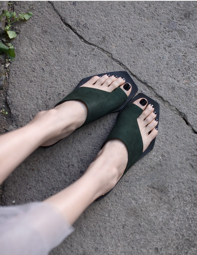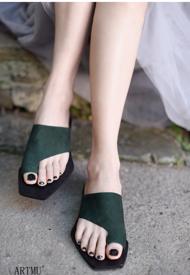ARTMU WIDE FIT LEATHER TOE LOOP FLAT SANDALS