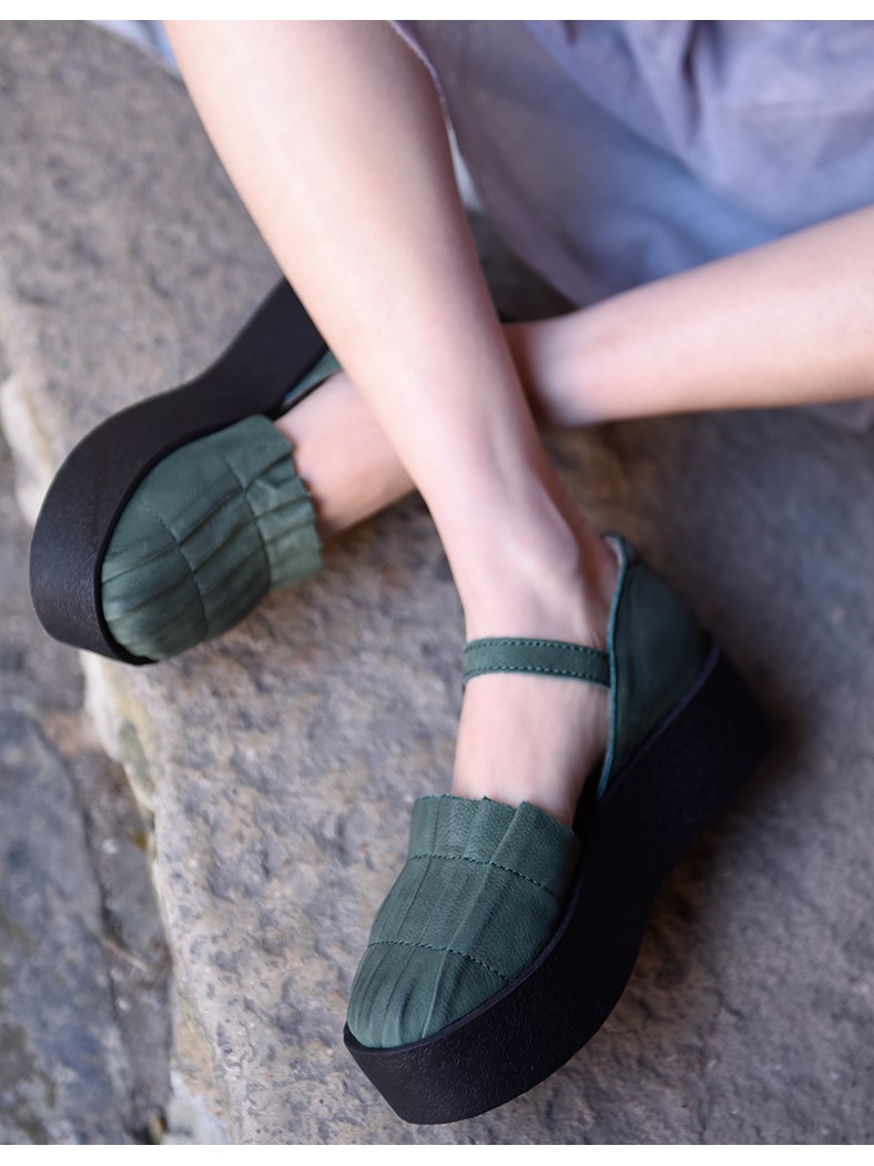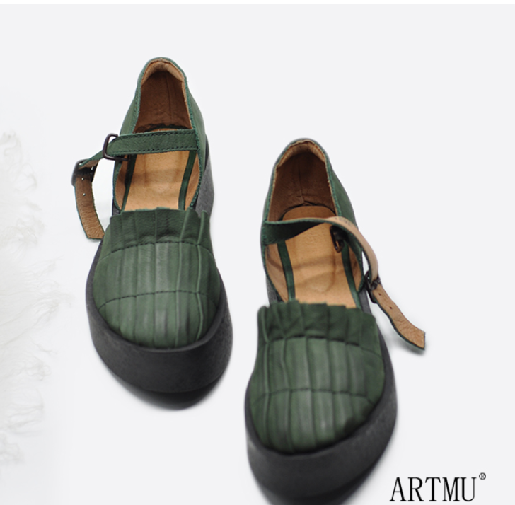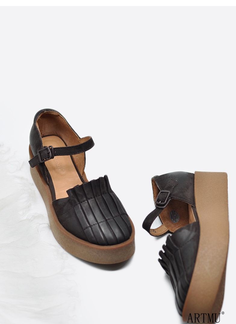 ARTMU LEATHER FLATFORM SANDALS WITH ANKLE STRAP FASTENING