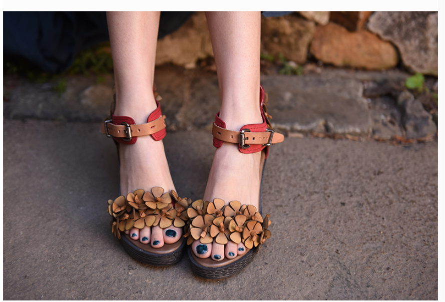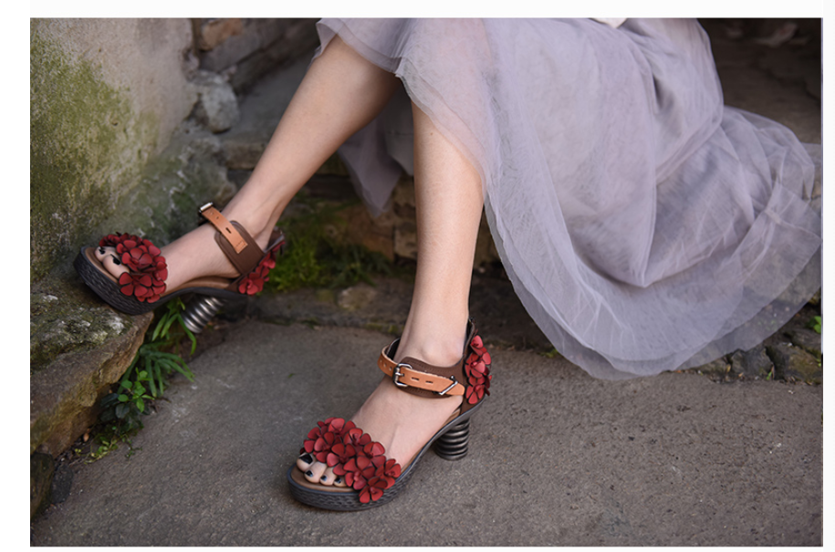 Open toe Floral embroidered Ankle-strap fastening Buckle detail Block heel 100% leather