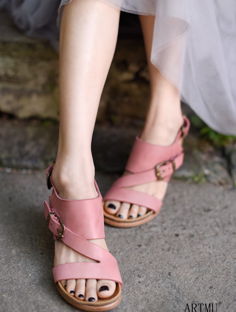 ARTMU DOUBLE BUCKLE DESIGN WEDGE SANDALS IN PINK