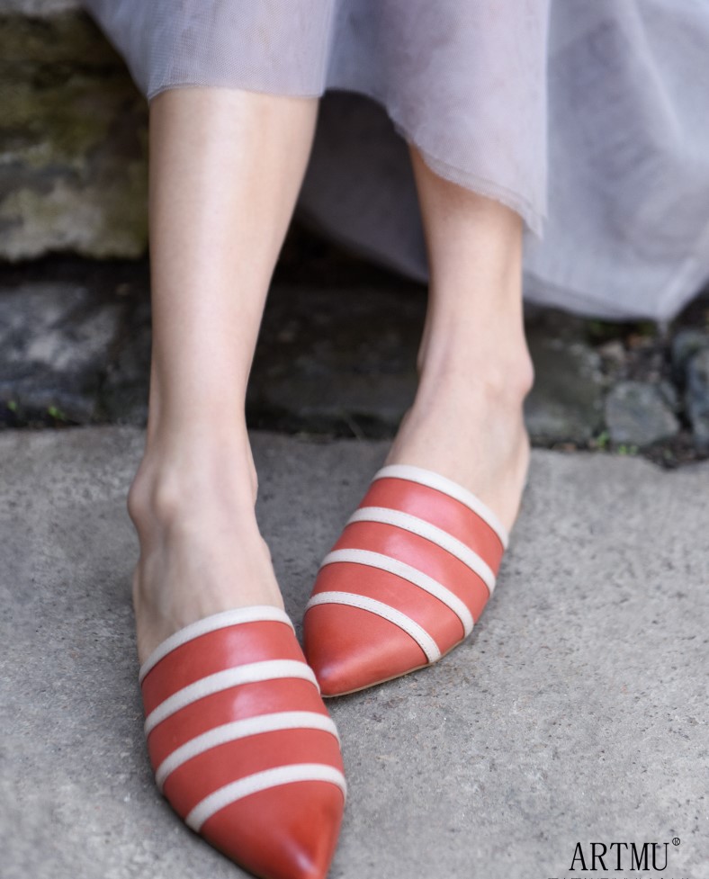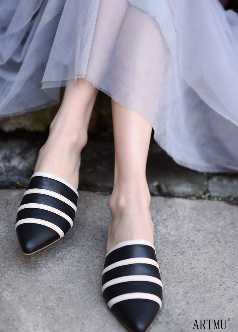 ARTMU STRIPED POINTED TOE FLAT MULES