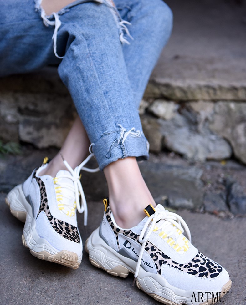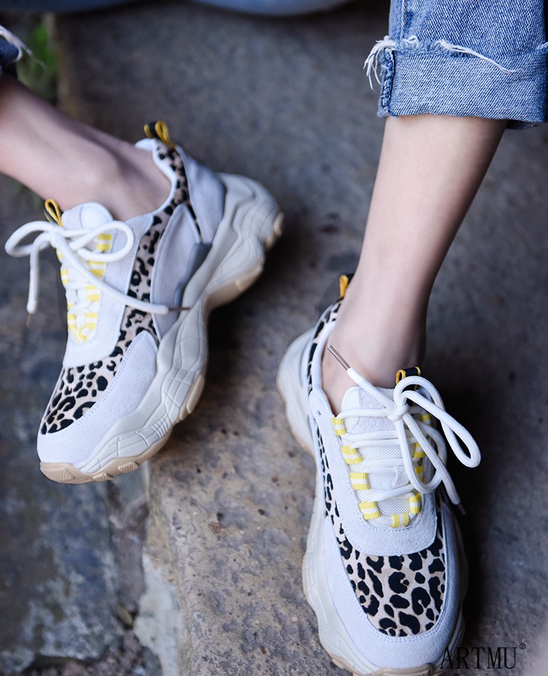 ARTMU LEOPARD PRINT CHUNKY TRAINERS IN CREAM
