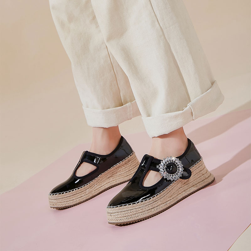 JANE MARZ ROXAPE CHUNKY PLATFORM CASUAL SHOES WITH RHINESTONE BUCKLE