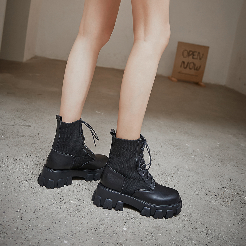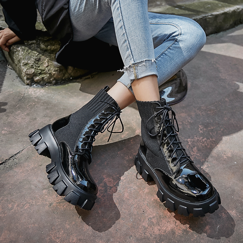 JANE ROXAPE GOTHIC STYLE PLATFORM LEATHER PUNK BOOTS IN BLACK