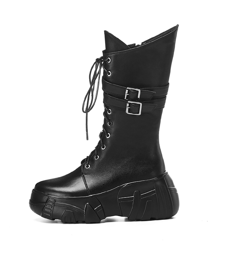 MOBONNIE QUEEN STUDIO PLATFORM HEEL 8 HOLE SUEDE WOMENS BOOTS