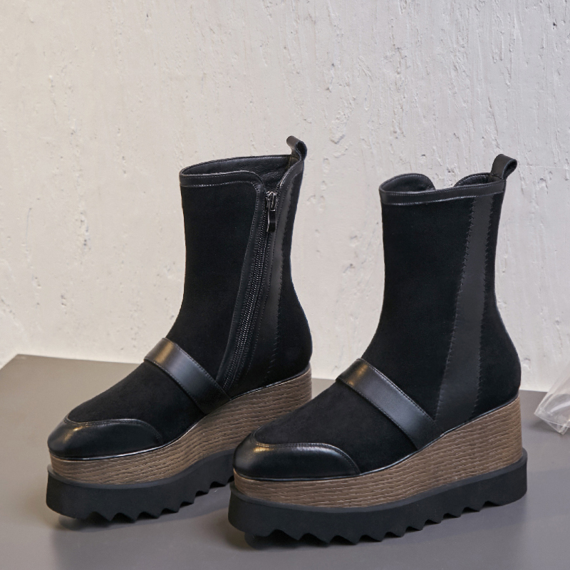 DUREO PORTE MARTIN SIDE ZIPPER PLATFORM LEATHER BOOTS IN BLACK