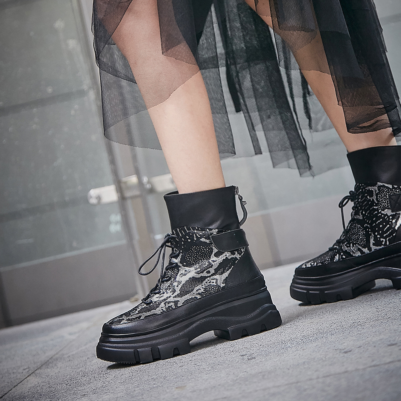 JENNY DUREO PLATFORM BRITISH STYLE LEATHER ANKLE BOOTS IN BLACK