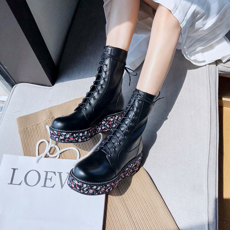 JOSASE JEZ PRONTO LACE UP FLOWER PRINT LEATHER BOOTS IN BLACK