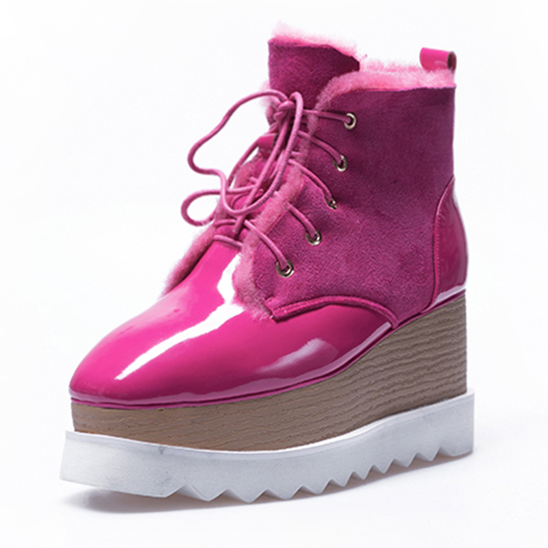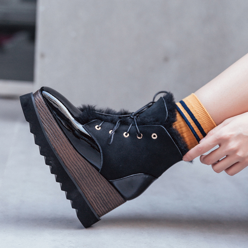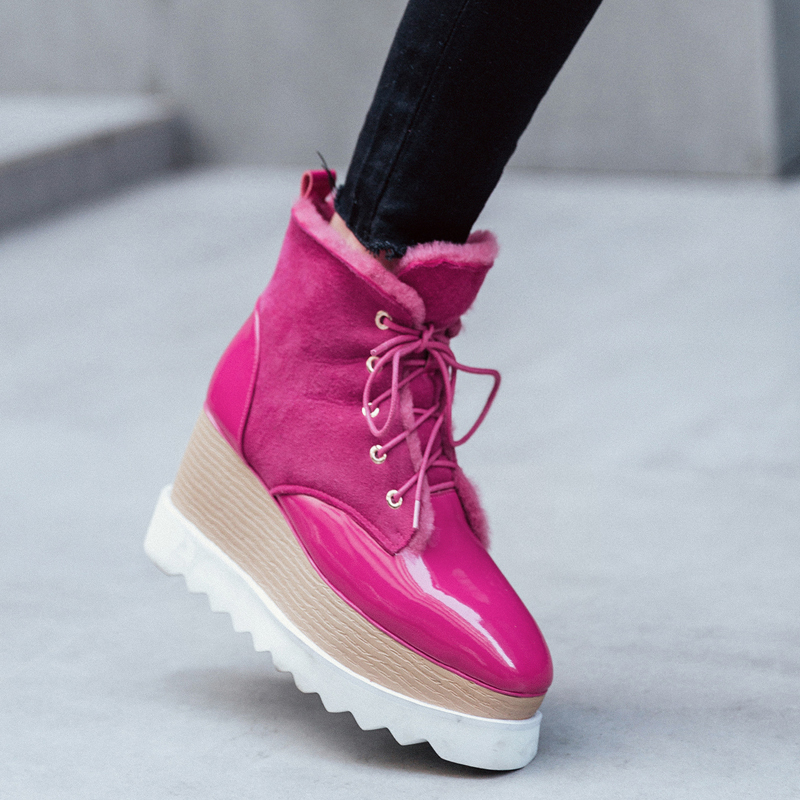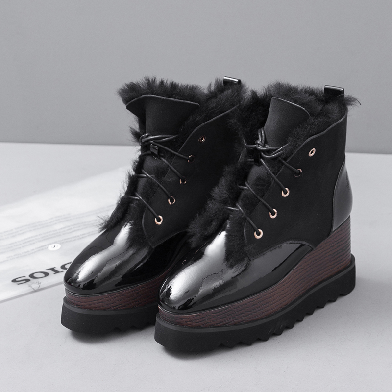 JOSASE JEZ BORZIYO LACE UP FAUX FUR WEDGED PLATFORM BOOTS