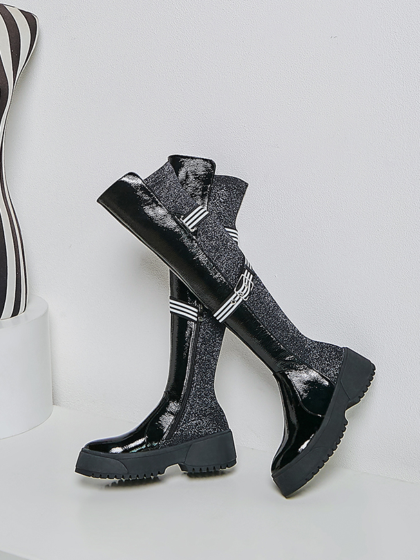 JOSHEZA HILZO CHUNKY PLATFORM STRETCH OVER THE KNEE BOOTS IN BLACK