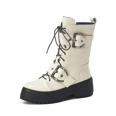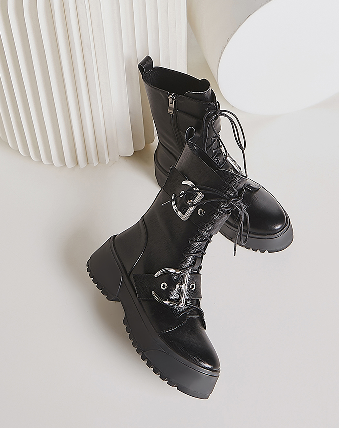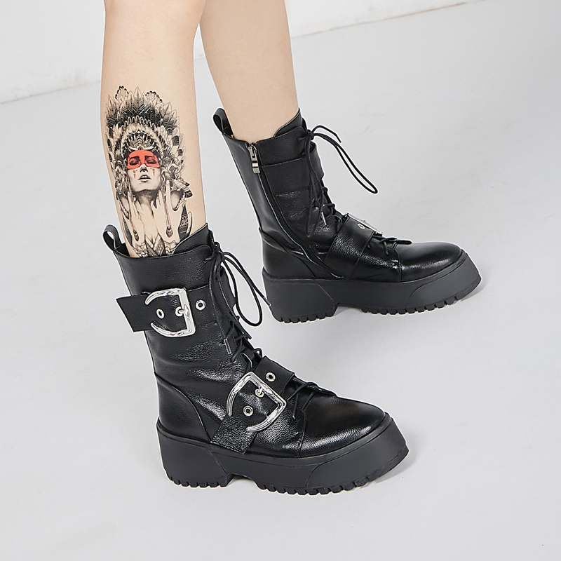JOSHEZA HILZO CHUNKY PLATFORM BRITISH STYLE BOOTIES WITH BELT BUCKLE
