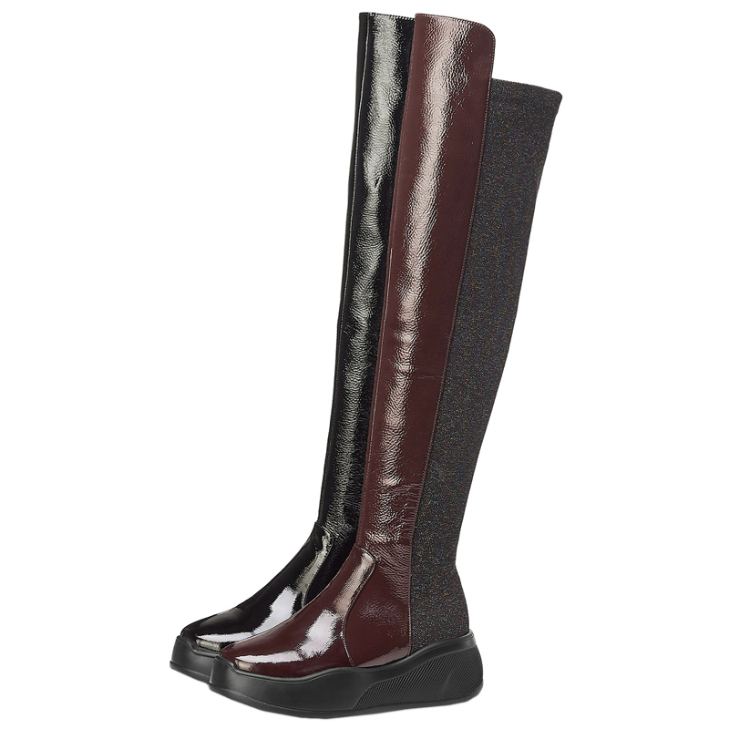 FOXY CHIC MAXSO CHARM CHUNKY PLATFORM LEATHER KNEE HIGH BOOTS