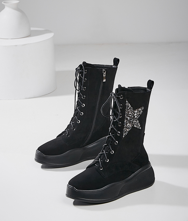 JOSHEZA ZIPO PLATFORM SOLED ANKLE BOOTS WITH RHINESTONES