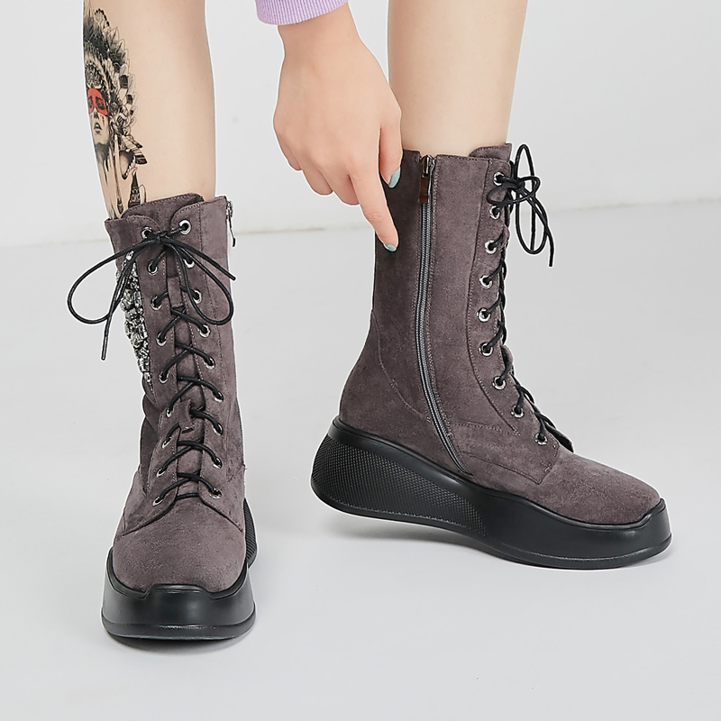 REVES ZESTOS BRITISH DESIGN THICK PLATFORM LACE UP LEATHER BOOTS