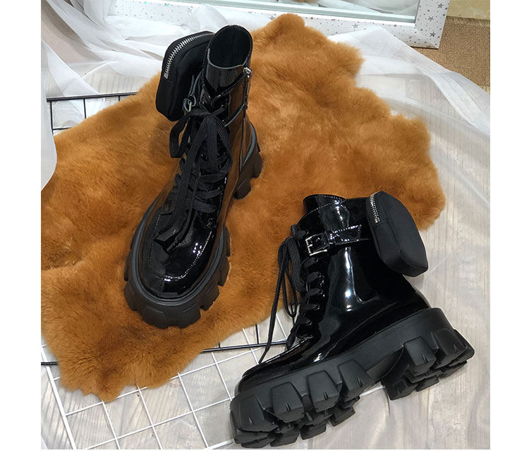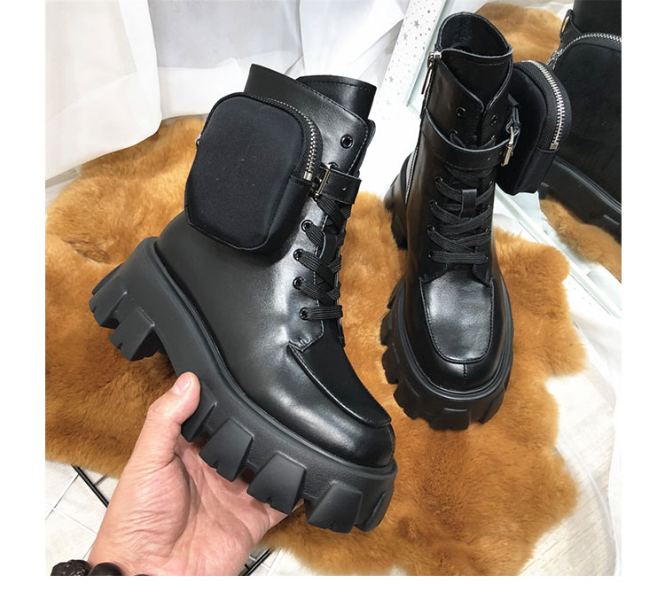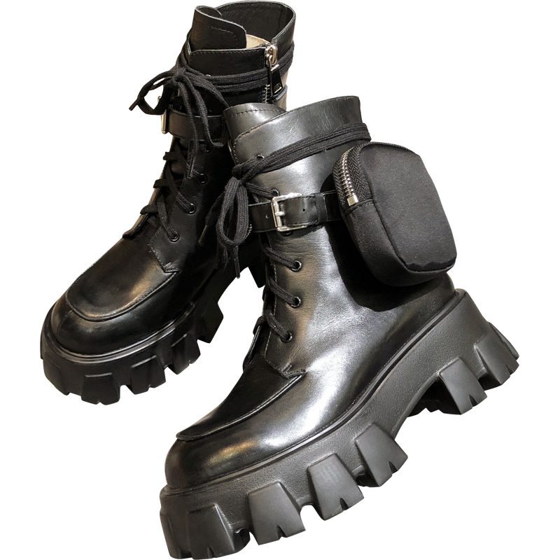 JESSY MARIA BRITISH STYLE LEATHER ANKLE BOOTS WITH POCKET IN BLACK