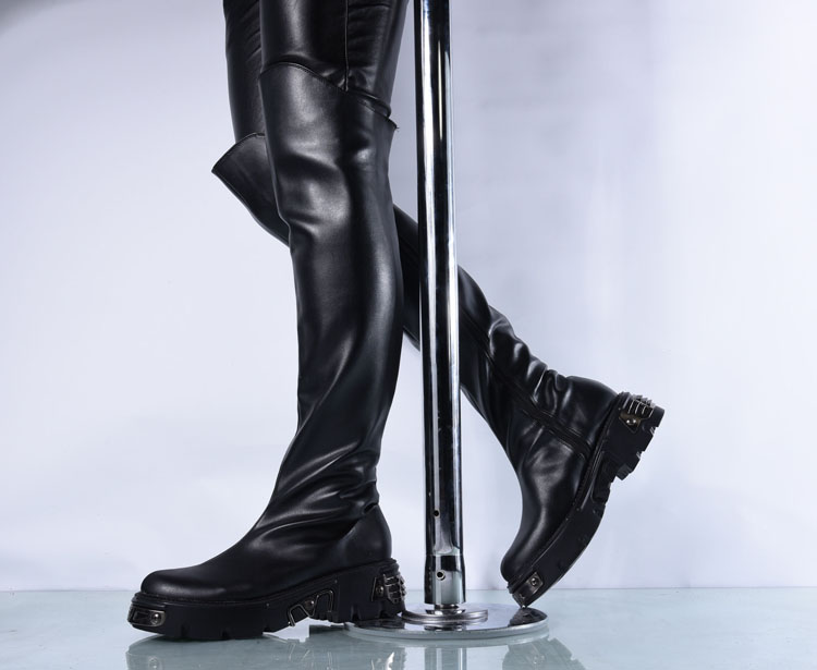 RUFIZOLA MOBONNIE BRITISH DESIGN OVER THE KNEE LEATHER BOOTS IN BLACK