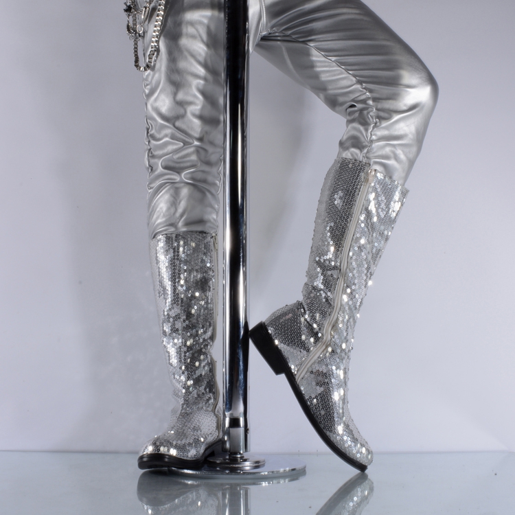 MOBONNIE ZUTH PERFORMANCE NIGHT CLUB PUNK ROCK LEATHER BOOTS WITH SEQUIN