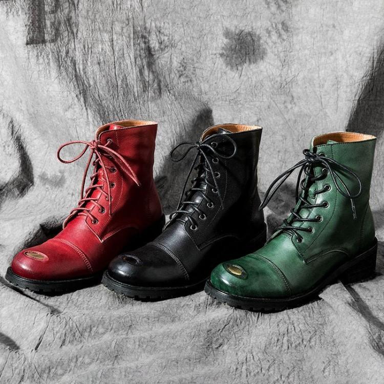 JERSY MARTINZA PUNK STYLE RETRO PATCH LEATHER BOOTS