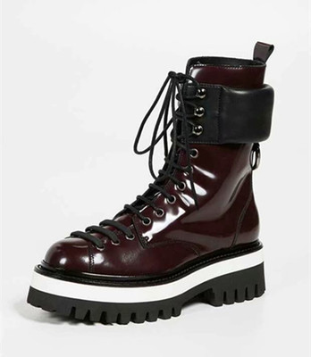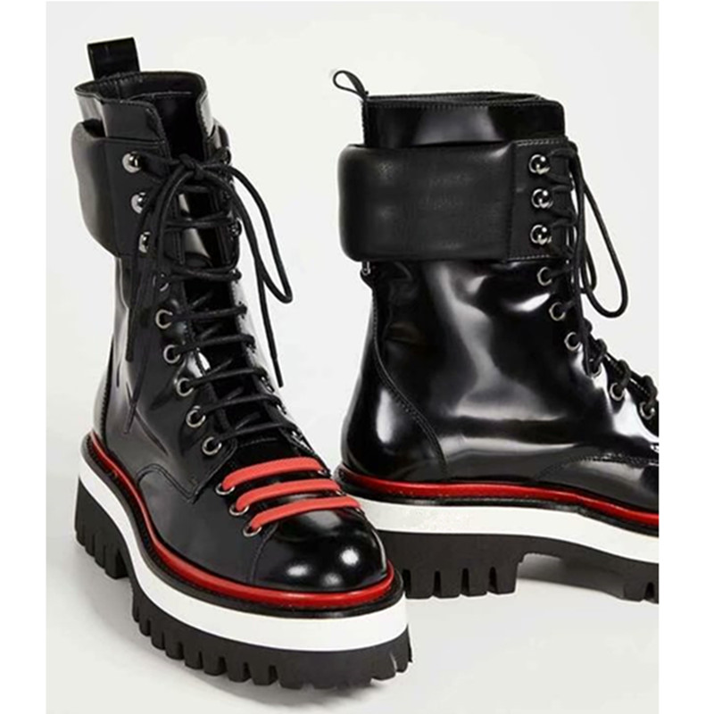 REVES ZESTOS BRITISH STYLE PLATFORM SOLE LACE UP LEATHER BOOTS WITH STRAP