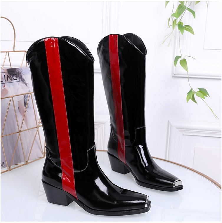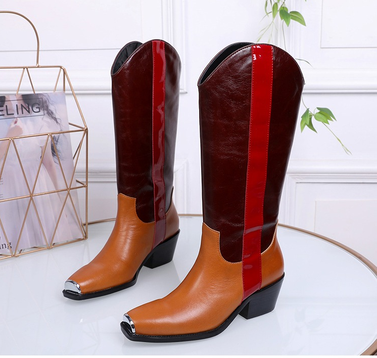 ALEXZA TEXAS COWBOY LEATHER BOOTS WITH SQUARE IRON HEAD