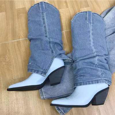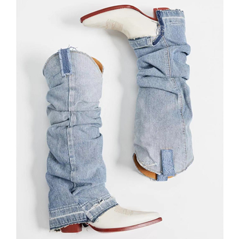 KENDONI TEXAS PATCHWORK DENIM WESTERN COWBOY LEATHER BOOTS