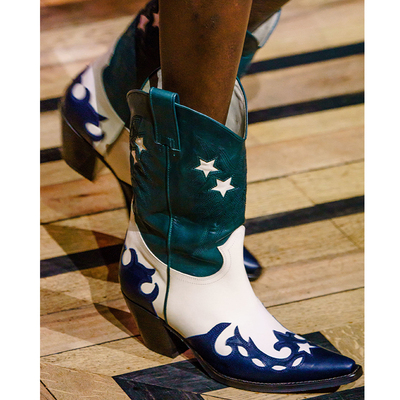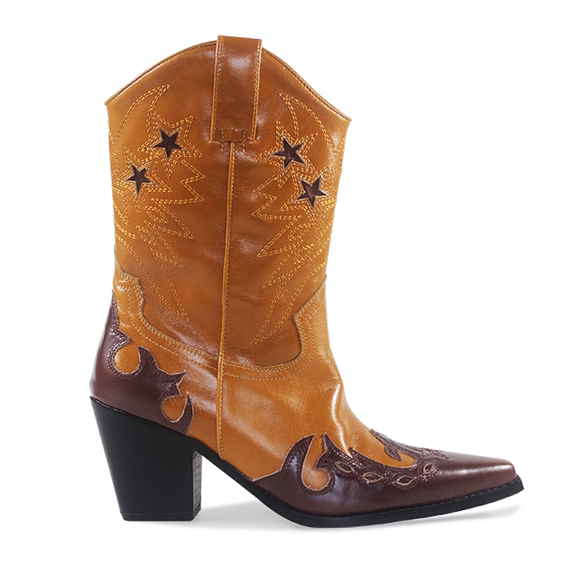 KENDOLA TEXAS EMBROIDERED WESTERN COWBOY LEATHER ANKLE BOOTS