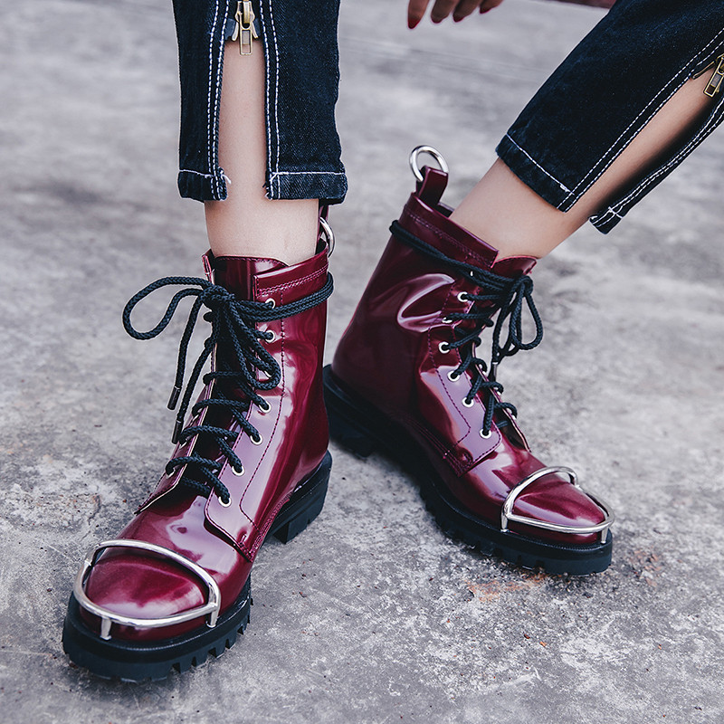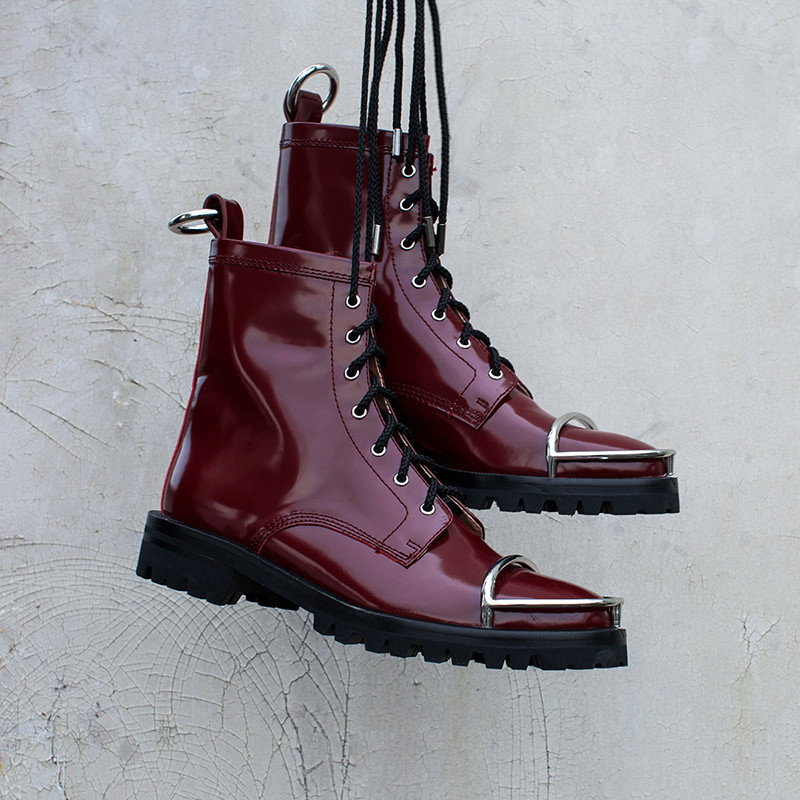 JESSY LOTUZA THICK SOLED LEATHER BOOTS IN WINE RED