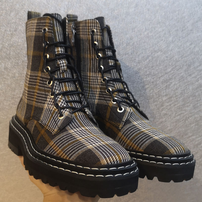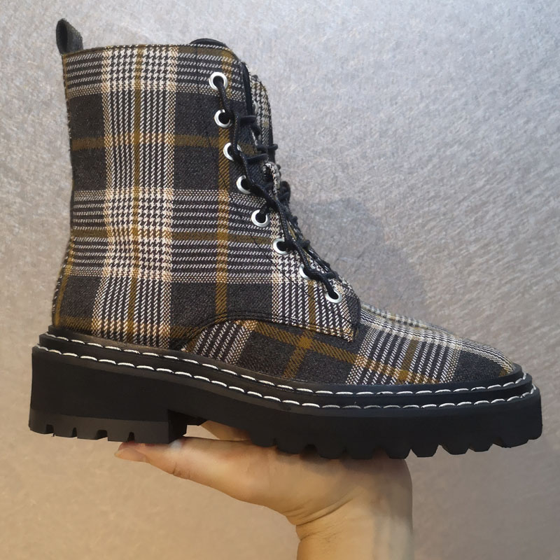 MONA BOTTAZA URBAN STYLE EIGHT HOLE THICK PLATFORM PLAID BOOTS IN BROWN