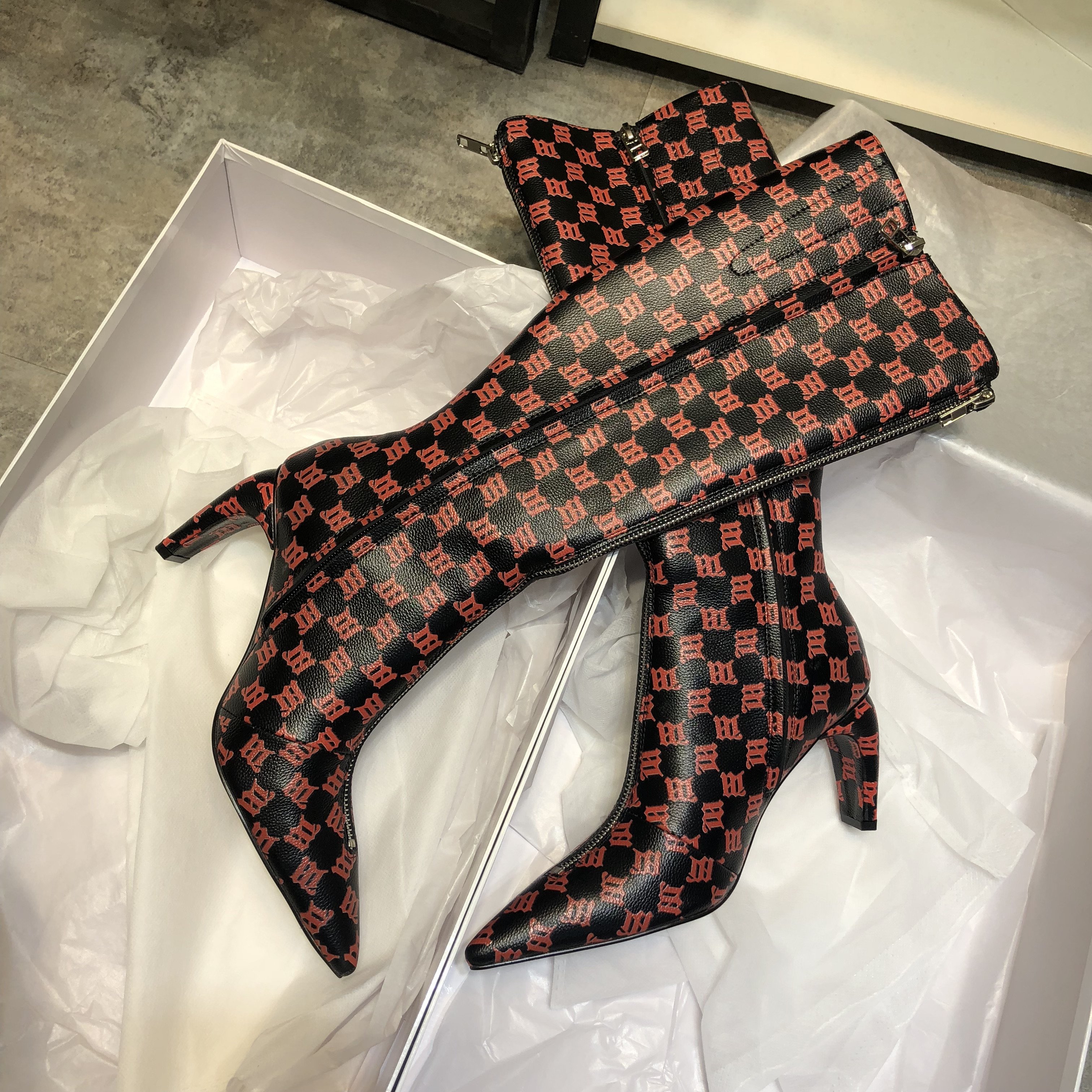 ZUZILA LOPPA THREE DIMENSIONAL PRINT HIGH HEELED DOUBLE ZIP BOOTS IN BLACK