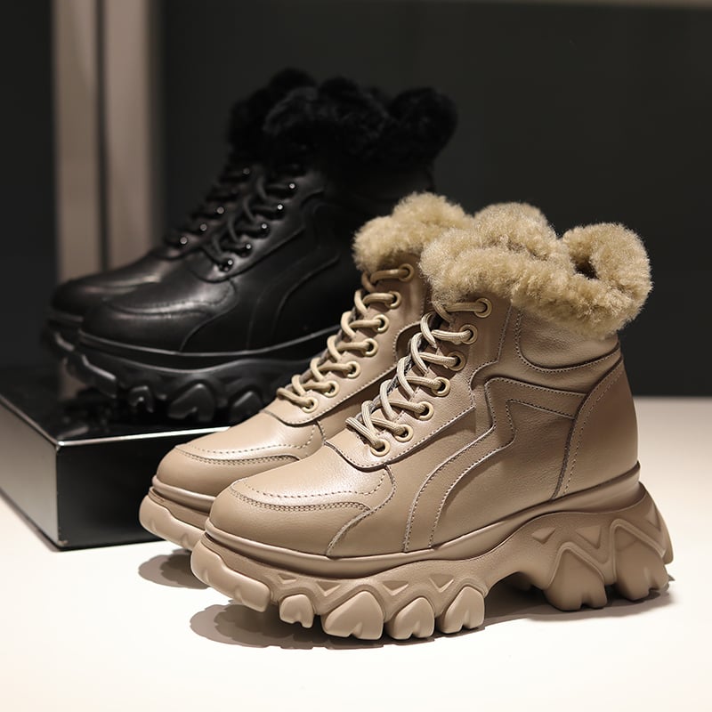 TRAVILO MARTINA WOOLEN PLATFORM LEATHER BOOTS
