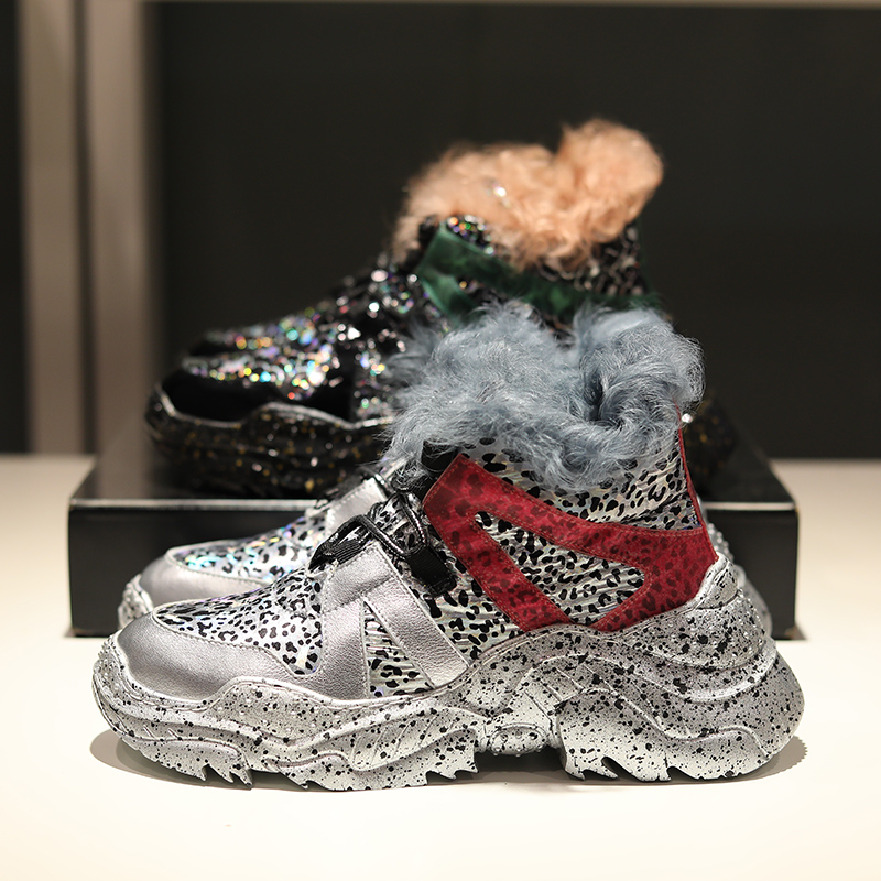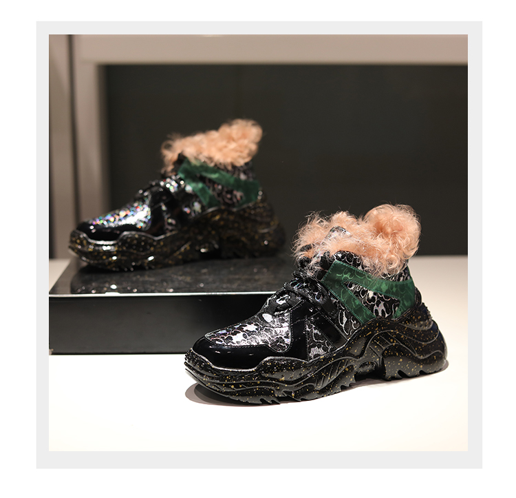 TRAVILO DENZAL POLKA STYLE CHUNKY PLATFORM FAUX FUR CASUAL SHOES
