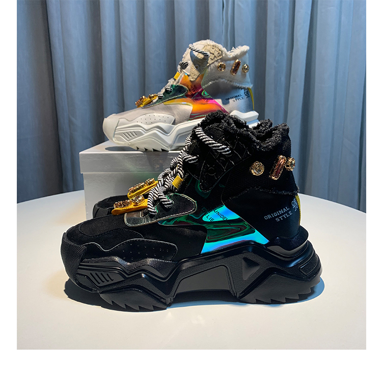 FETEZEZ DINONA CHUNKY HEELS PLATFORM CASUAL SNEAKER WITH RHINESTONE