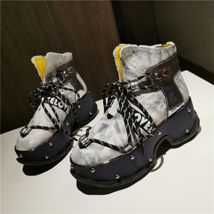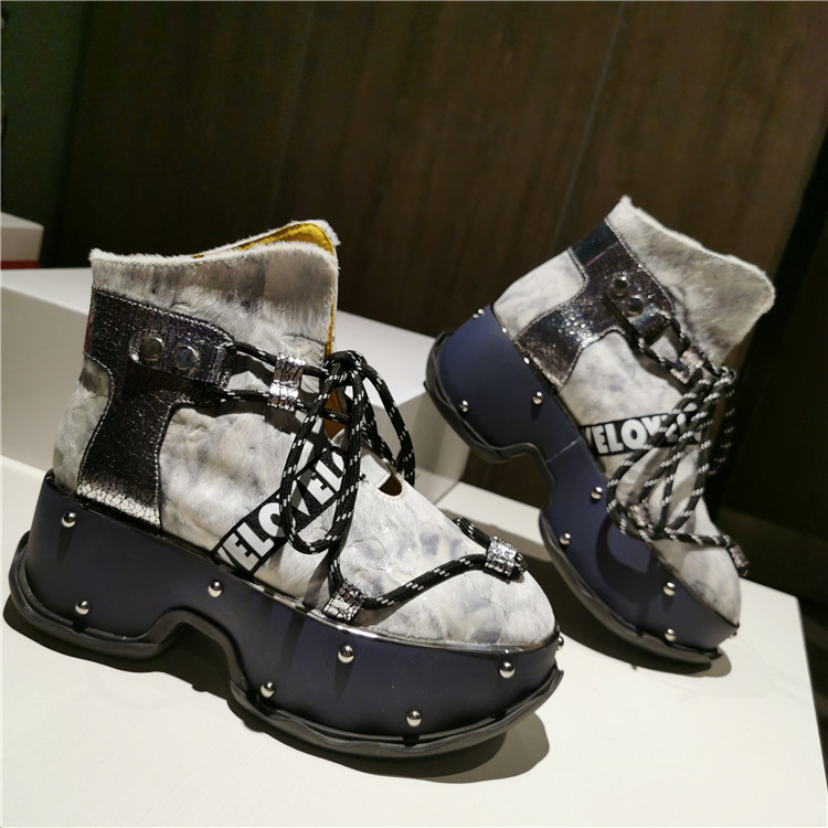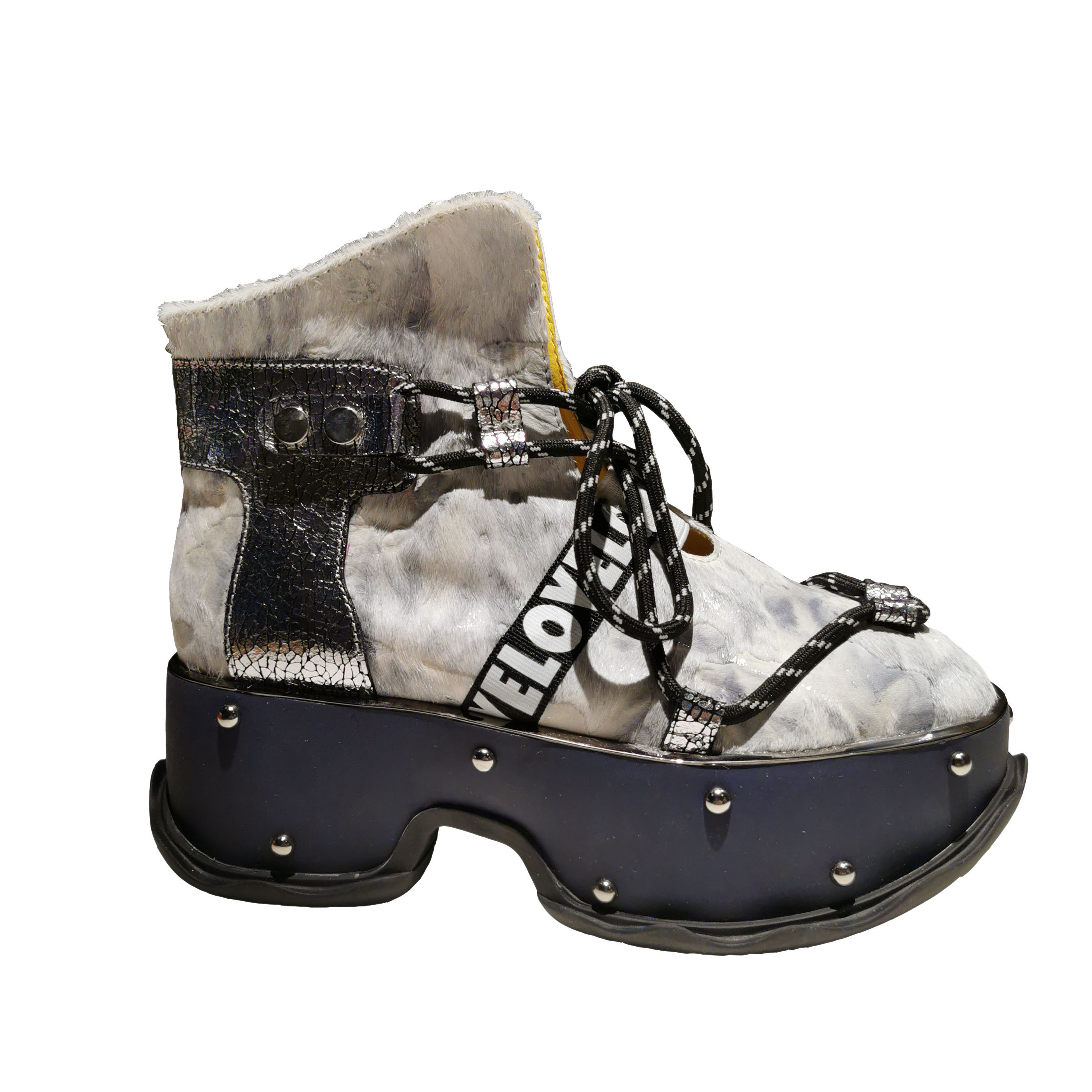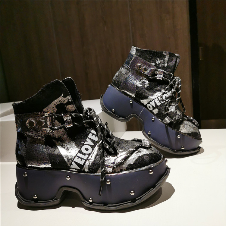 LOLULA ZAPPASZI RETRO PLATFORM LACE UP LEATHER BOOTS WITH RIVETS