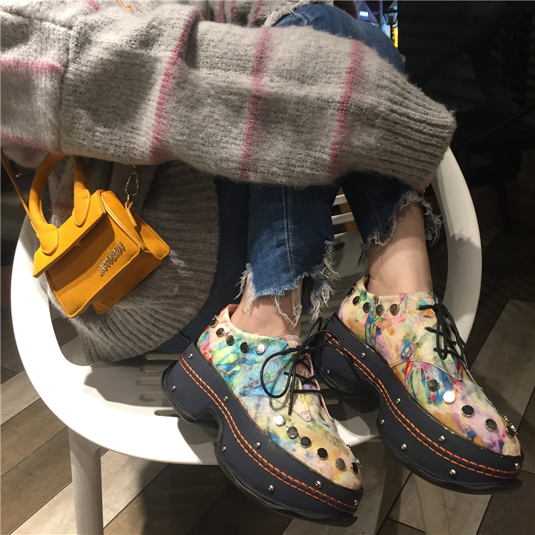 REXZI ZOZA FUKUZA BRITISH THICK SOLE PLATFORM LEATHER SHOES WITH RIVET