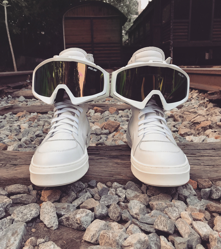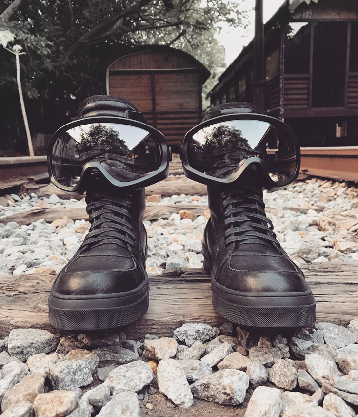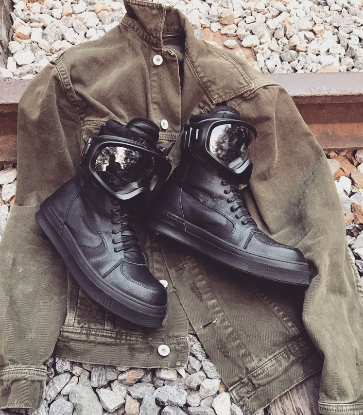 NESERV JULIUS HYPE BEAST NESSER LEATHER SNEAKER BOOTS WITH SKI GLASSES