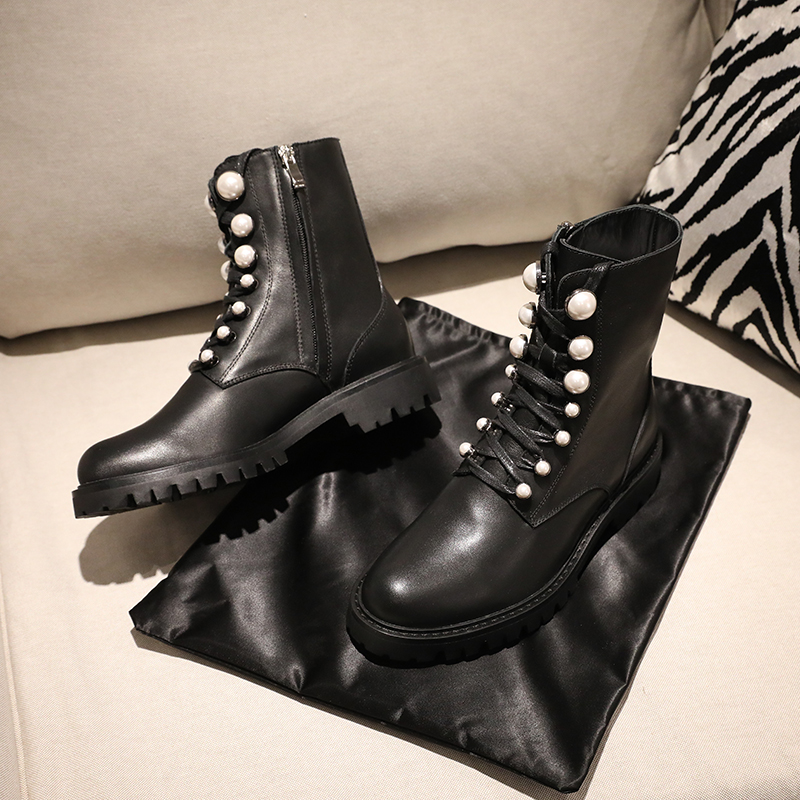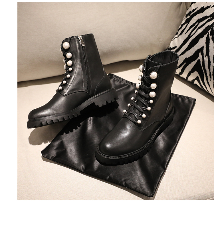 NANCY SHPACKS LEATHER PEARL STONE LACE UP WOMENS ANKLE BOOTS IN BLACK