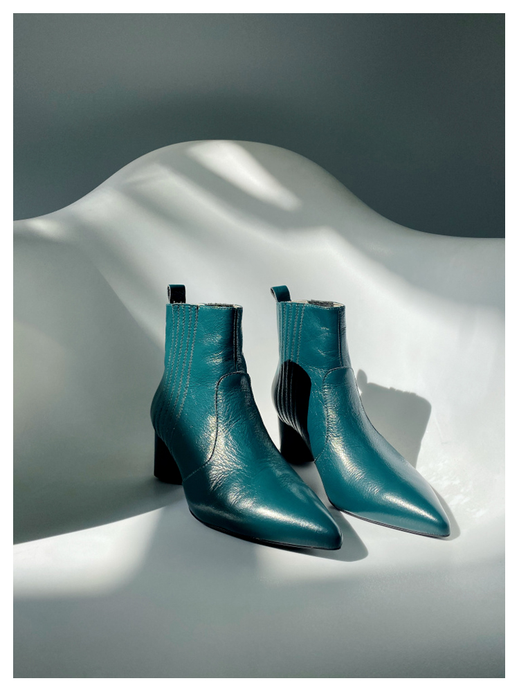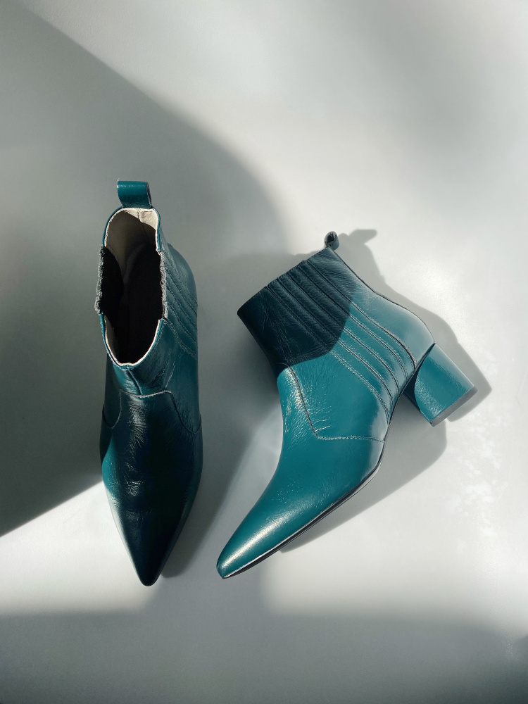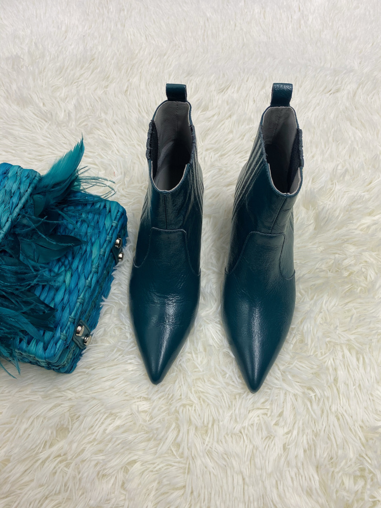 LUXE SEVEN DESIGN MID HEELED ANKLE BOOTS IN TEAL