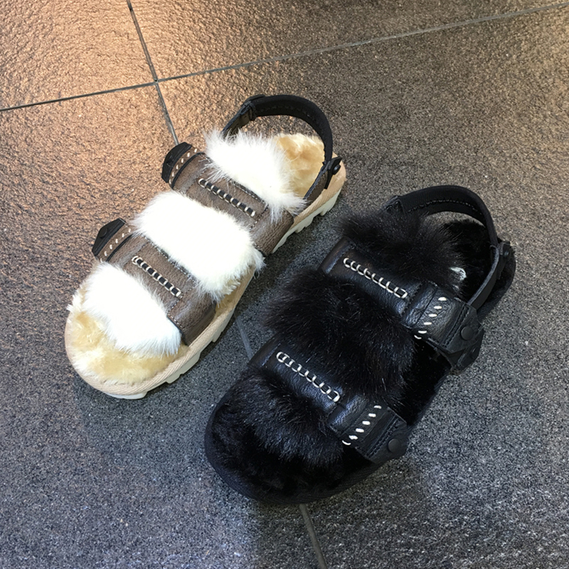 LUXE SEVEN DESIGN FAUX FUR SANDALS