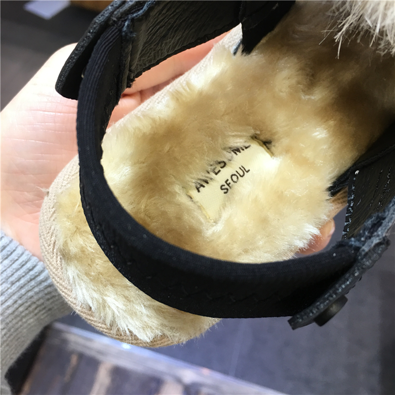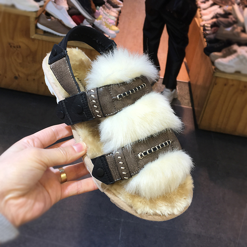 Ankle-strap fastening Faux fur lining Open toe Chunky sole
