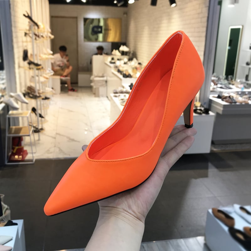 LUXE SEVEN DESIGN NEON HEELED COURT SHOES