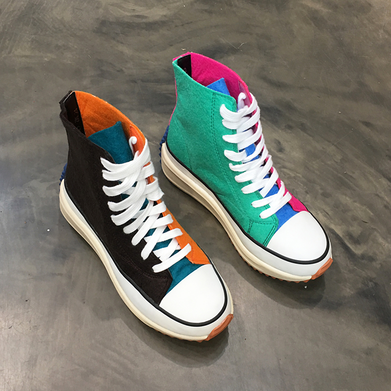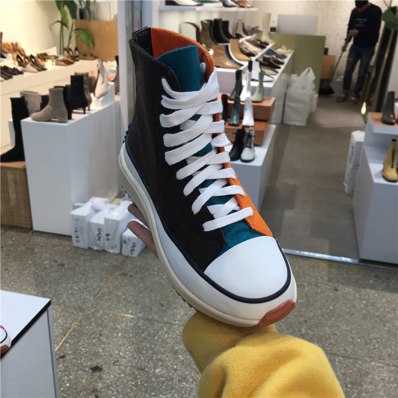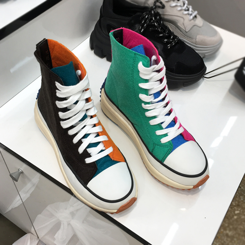 LUXE SEVEN DESIGN COLORBLOCK HIGH TOP CANVAS TRAINERS