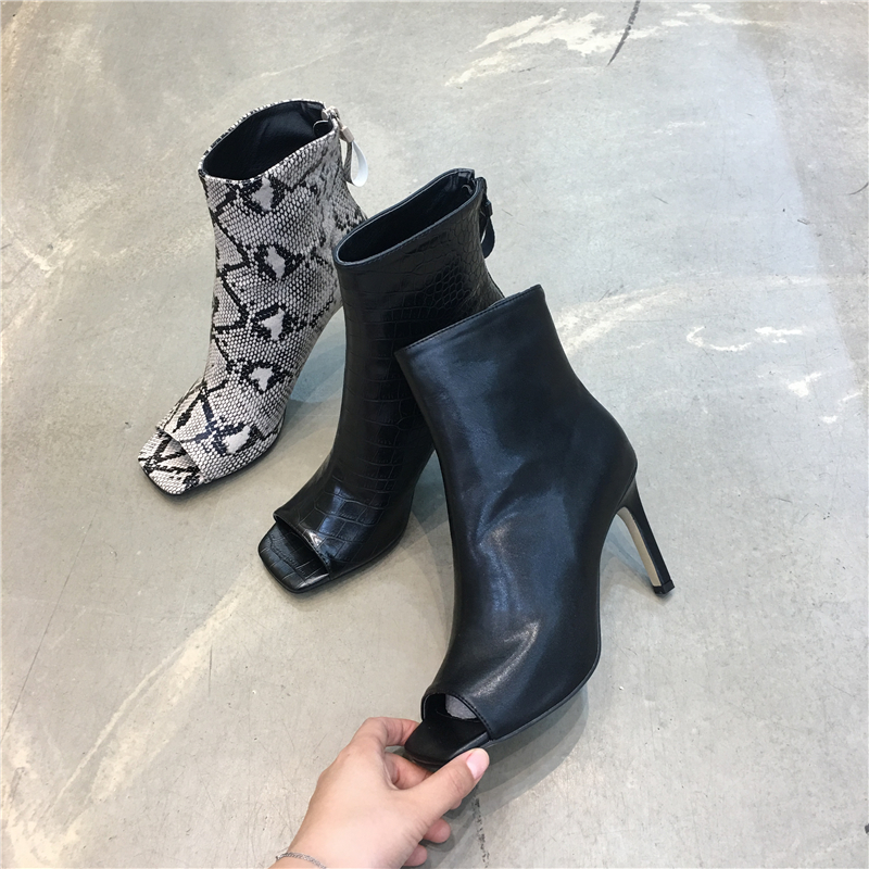 LUXE SEVEN DESIGN PEEP TOE STILETTO BOOTS