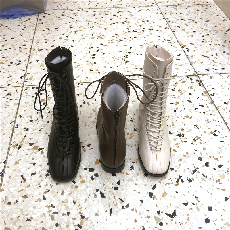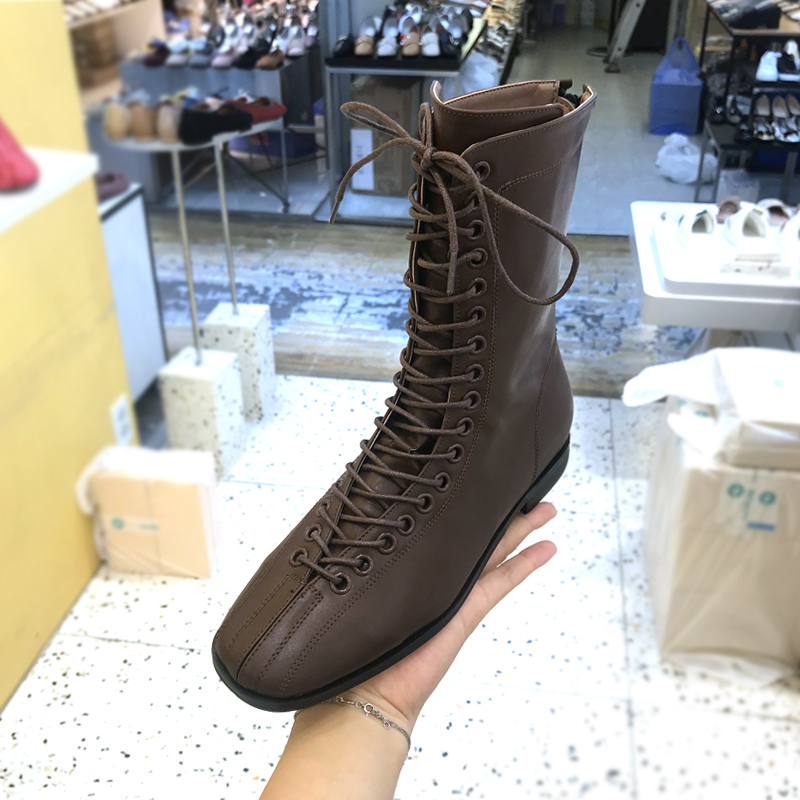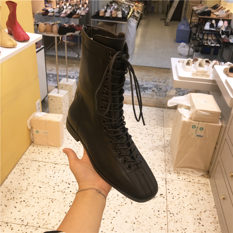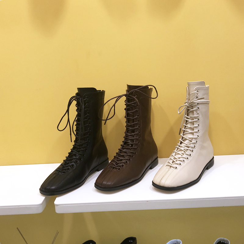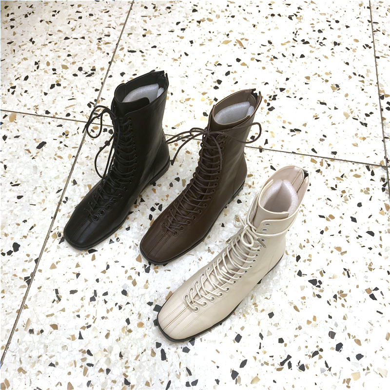 LUXE DESIGN LACE UP FLAT ANKLE BOOTS